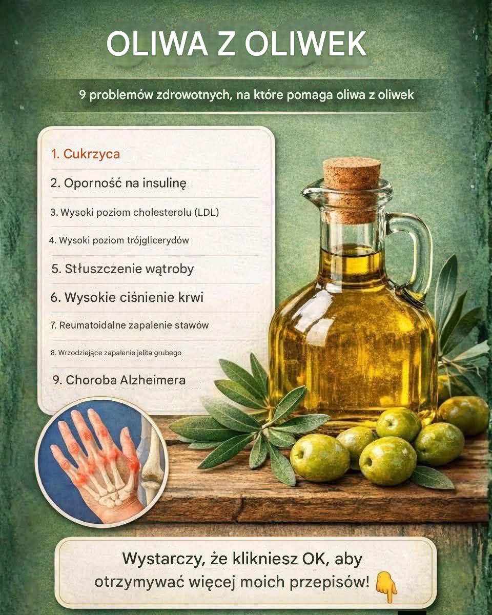 W świecie naturalnych środków leczniczych niewiele jest tak prostych, a jednocześnie skutecznych połączeń jak oliwa z oliwek z cytryną. Ta naturalna mieszanka, stosowana od wieków w tradycyjnej medycynie śródziemnomorskiej, zyskuje na popularności dzięki nowoczesnym badaniom potwierdzającym wiele jej prozdrowotnych właściwości. Picie oliwy z oliwek z cytryną na pusty żołądek to codzienny nawyk, który może pomóc oczyścić organizm, poprawić trawienie i ogólne samopoczucie. Poniżej odkryjesz 25 sprawdzonych i tradycyjnych korzyści płynących ze spożywania oliwy z oliwek z cytryną oraz jak ją prawidłowo przygotować. 1. Poprawia trawienie: Oliwa z oliwek stymuluje produkcję żółci, a cytryna aktywuje enzymy trawienne, pomagając żołądkowi w efektywniejszym przetwarzaniu pokarmu. 2. Łagodzi zaparcia: Ta kombinacja działa jak naturalny środek smarujący dla jelit, wspomagając płynniejsze wypróżnianie. 3. Wspomaga detoksykację wątroby: Oliwa z oliwek i cytryna wspomagają pracę wątroby i pomagają organizmowi w usuwaniu nagromadzonych toksyn. 4. Poprawia pracę nerek: Cytryna działa jak delikatny, naturalny środek moczopędny, wspomagając oczyszczanie nerek i przepływ moczu. 5. Wzmacnia układ odpornościowy. Witamina C z cytryny w połączeniu z przeciwutleniaczami zawartymi w oliwie z oliwek pomaga wzmocnić naturalne mechanizmy obronne organizmu. 6. Reguluje poziom cholesterolu. Oliwa z oliwek extra virgin pomaga obniżyć poziom LDL (złego cholesterolu), a jednocześnie zwiększyć poziom HDL (dobrego cholesterolu). 7. Chroni zdrowie serca. Zdrowe tłuszcze jednonienasycone poprawiają krążenie krwi i zmniejszają obciążenie układu sercowo-naczyniowego. 8. Zmniejsza stany zapalne stawów. Oliwa z oliwek zawiera naturalne związki przeciwzapalne, które mogą łagodzić dolegliwości stawowe. 9. Poprawia wygląd skóry. Zawarte w niej odżywcze tłuszcze i przeciwutleniacze pomagają nawilżyć skórę i nadać jej młodzieńczy blask. 10. Zwalcza wolne rodniki. Oba składniki są bogate w przeciwutleniacze, które chronią komórki przed uszkodzeniami oksydacyjnymi. 11. Wspomaga odchudzanie. Spożywana rano może pomóc kontrolować apetyt i stymulować metabolizm. 12. Wzmacnia włosy od wewnątrz. Regularne spożywanie odżywia skórę głowy i wspomaga mocniejsze, bardziej lśniące włosy. 13. Pomaga zapobiegać refluksowi żołądkowemu. Oliwa z oliwek powleka wyściółkę żołądka, a cytryna pomaga regulować kwasy trawienne. 14. Równoważy pH ciała. Chociaż cytryna ma kwaśny smak, po zmetabolizowaniu ma działanie alkalizujące.15. Poprawia wchłanianie składników odżywczych. Oliwa z oliwek wspomaga wchłanianie witamin rozpuszczalnych w tłuszczach, takich jak A, D, E i K.16. Odświeża oddech.