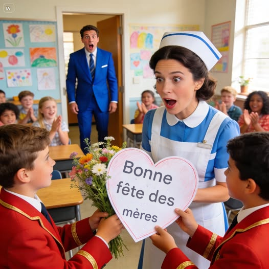 Ale kiedy wszedł do klasy, zobaczył coś, czego się nie spodziewał. Jego bliźniaki stały już obok kogoś innego. Nie nauczyciela, nie członka rodziny, ale sprzątaczki.