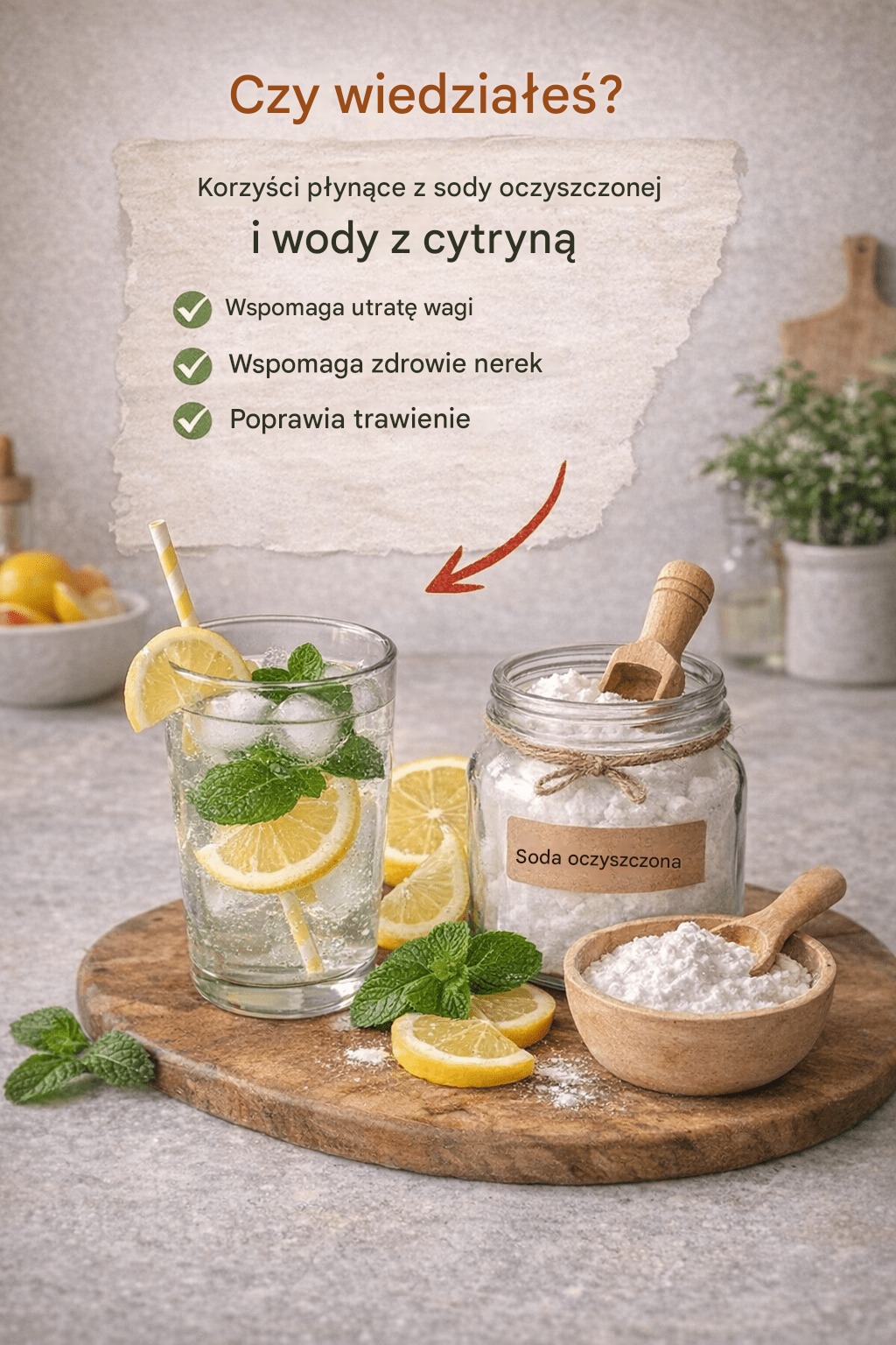 Tworzy odczucie alkalizujące, które wiele osób lubi — reakcja między kwasem zawartym w cytrynie a zasadą zawartą w sodzie oczyszczonej może dać poczucie równowagi, choć ten efekt jest przejściowy w żołądku.