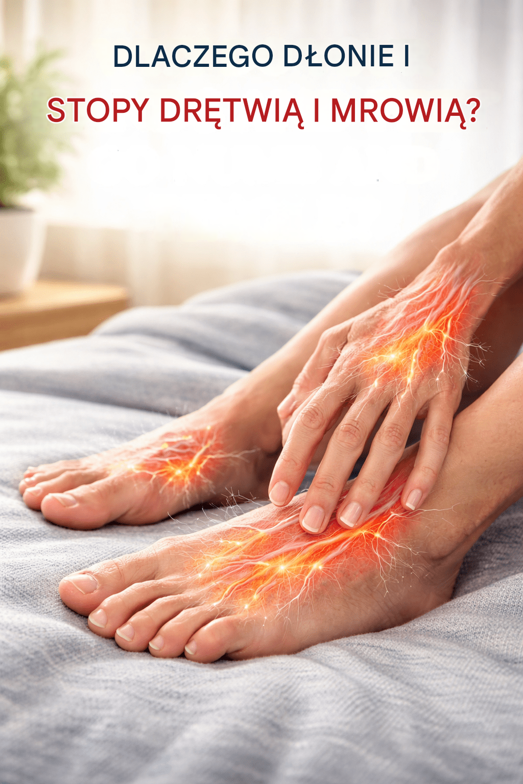 Piszesz na telefonie, prowadzisz samochód lub po prostu próbujesz zasnąć, gdy nagle to znajome uczucie mrowienia wkrada się w Twoje palce u rąk i nóg. Na początku jest to irytujące. Potem staje się rozpraszające. A jeśli się powtarza, może zacząć Cię niepokoić. To drętwienie i mrowienie w dłoniach i stopach jest częstsze, niż mogłoby się wydawać, i to sygnał, który Twoje ciało wysyła, że coś wymaga uwagi.