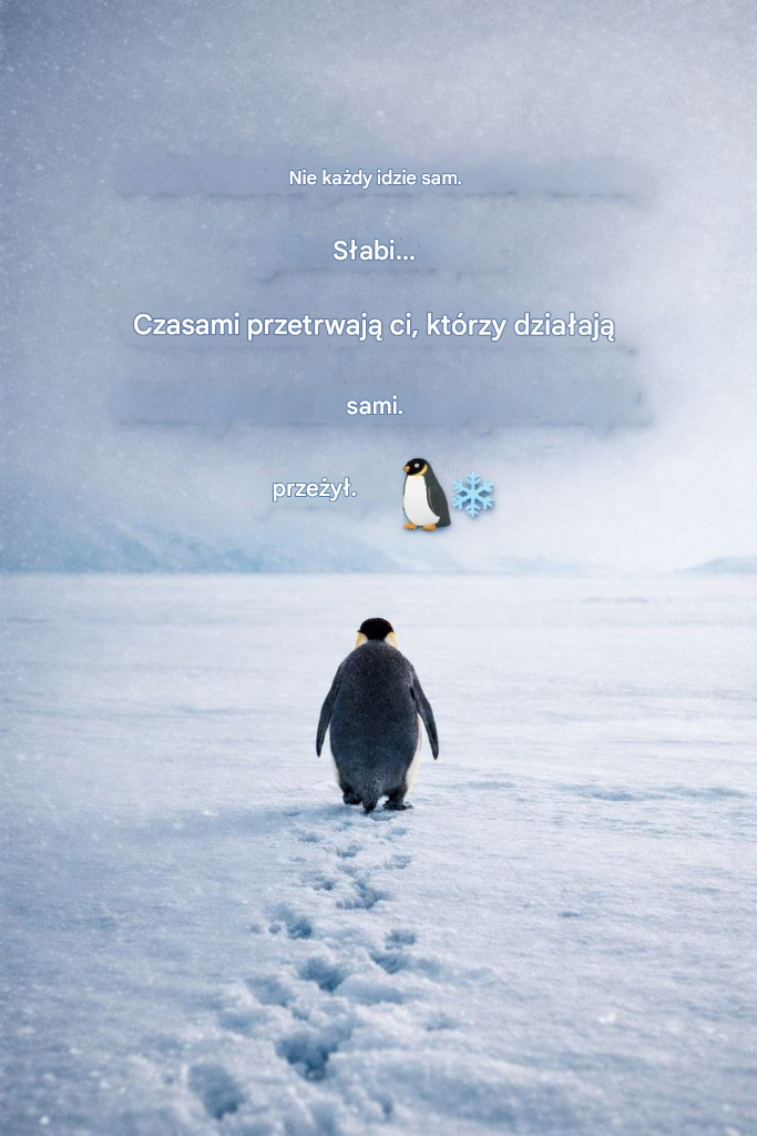 Pośrodku białej pustyni, gdzie króluje chłód, a wiatr jest nieubłagany, pingwin samotnie kroczy.