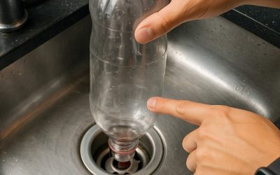 Włożenie butelki do góry dnem do odpływu zlewu: sprytny trik