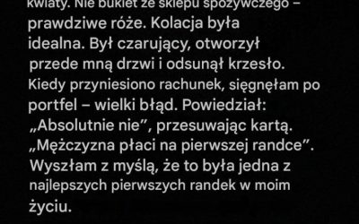Nie zamierzałam się kłócić o darmowy posiłek, zwłaszcza po tak miłym wieczorze. Wyszliśmy razem, a on zapytał, czy mógłby do…