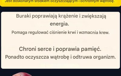 Do korzyści zdrowotnych buraków należą: bogactwo niezbędnych składników odżywczych; buraki są doskonałym źródłem błonnika, kwasu foliowego (witaminy B9), manganu, potasu,…