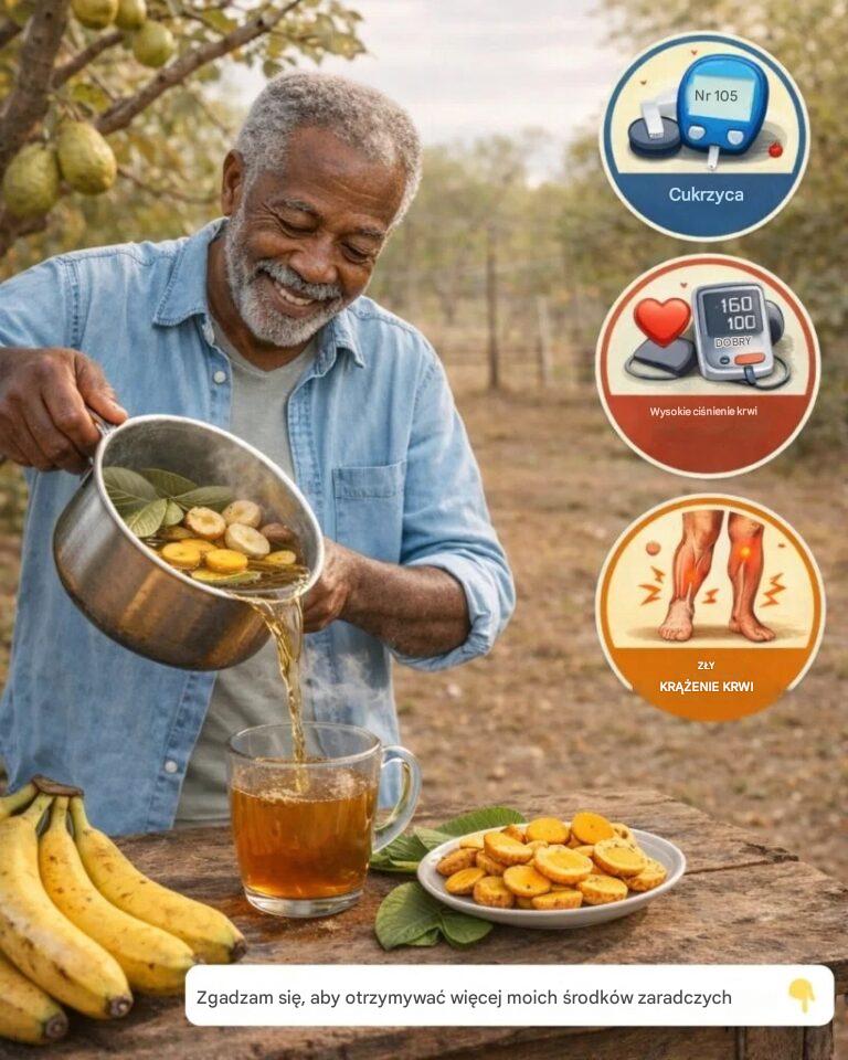 W świecie medycyny naturalnej niewiele jest tak prostych, a jednocześnie tak skutecznych środków jak ten złoty napój z liści guawy, skórek bananów i kurkumy . Choć lekarze rzadko o nim mówią, mikstura ta od wieków jest ceniona w medycynie tradycyjnej za zdolność do regulacji poziomu cukru we krwi, wspierania zdrowia serca i naturalnej poprawy krążenia.