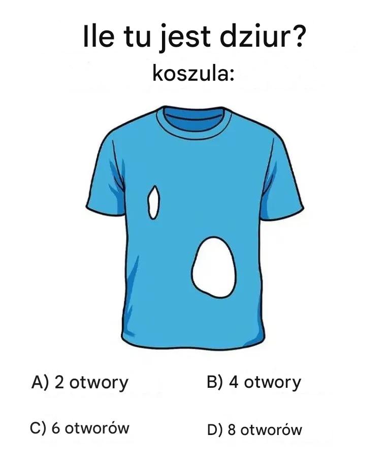 brzmi: Ile dziur ma ta koszula? Odpowiedź brzmi: osiem.